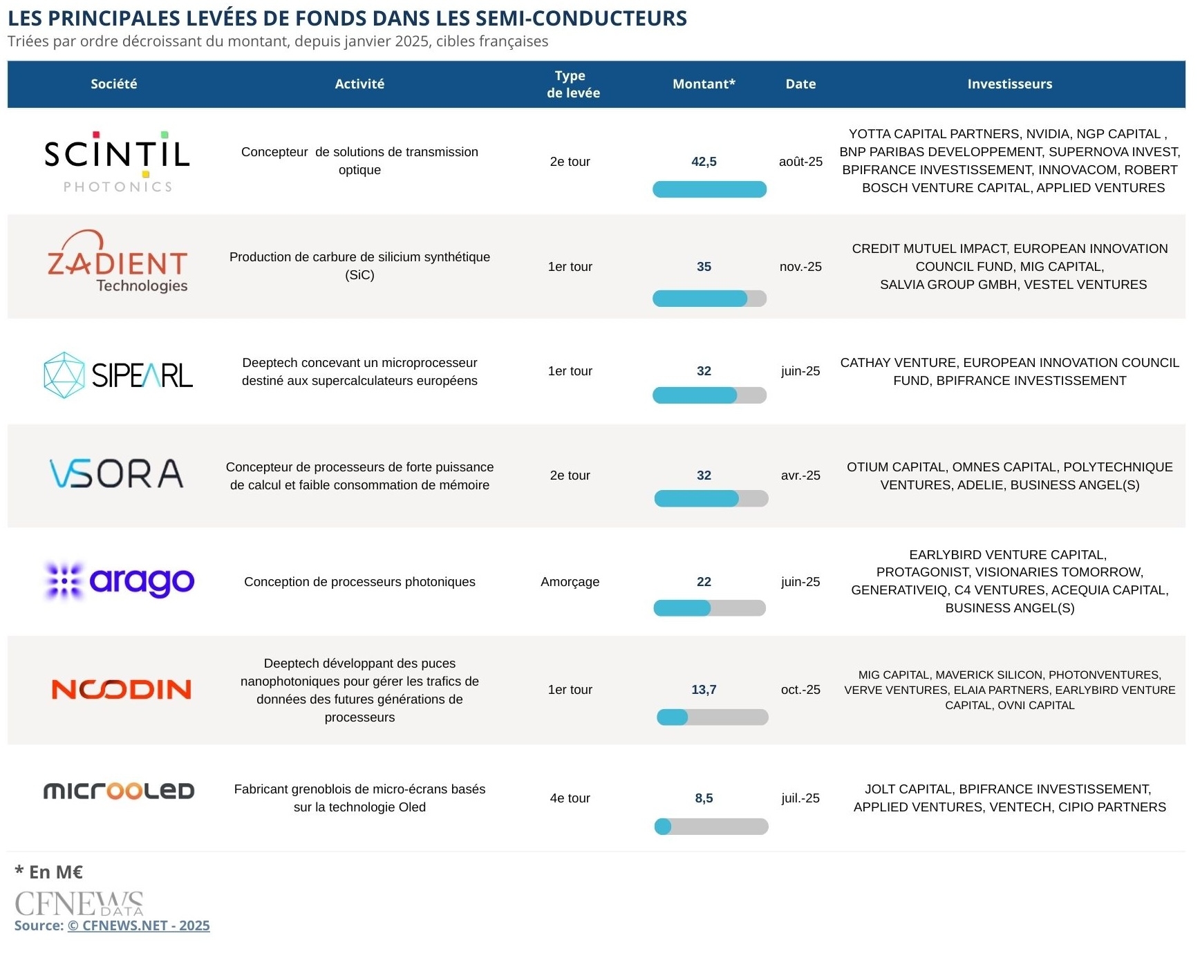 Zadient Technologies accueille un premier fonds français à son capital. Le producteur savoyard de carbure de silicium synthétique (SiC) réalise un tour de 35 M€ mené par le Crédit Mutuel. Celui-ci intervient via son fonds Révolution Environnementale et Solidaire, abondé par le dividende sociétal de Crédit Mutuel Alliance Fédérale et géré par Crédit Mutuel Impact. « Cette opération entre dans la thèse de notre fonds Révolution Environnementale et Solidaire car les composants en carbure de silicium sont indispensables pour les véhicules électriques, et présentent des applications dans les panneaux photovoltaïques, les éoliennes ou les trains électriques. Les semi-conducteurs en carbure de silicium disposent en effet d’une efficacité énergétique plus grande et supportent des courants électriques de plus forte puissance que le silicium », précise Sabine Schimel, directrice de Crédit Mutuel Impact. La banque est suivie par le fonds du Conseil Européen de l’Innovation (EIC). Ces deux nouveaux entrants rejoignent dans l'actionnariat les allemands Blue Wonder Ventures, MIG Capital et Salvia ainsi que Vestel Ventures, branche d'investissement du fabricant turc d'électroménager et de produits électroniques grand public Vestel. Ces derniers sont arrivés en 2021 à l'occasion d'un tour de 2,5 M€.