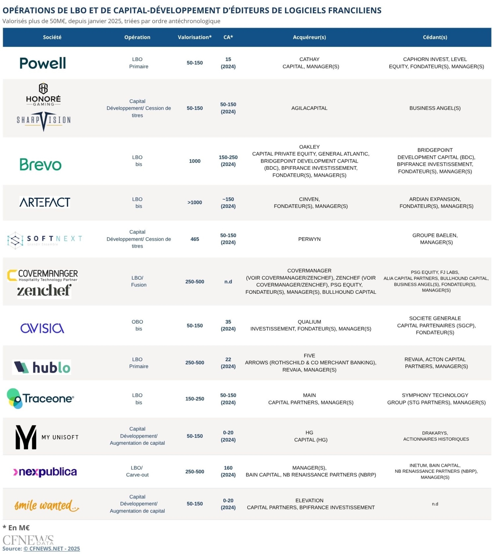 OPÉRATIONS DE LBO ET DE CAPITAL-DÉVELOPPEMENT DANS LES ÉDITEURS DE LOGICIELS FRANCILIENS. ©CFNEWS.net - 2025