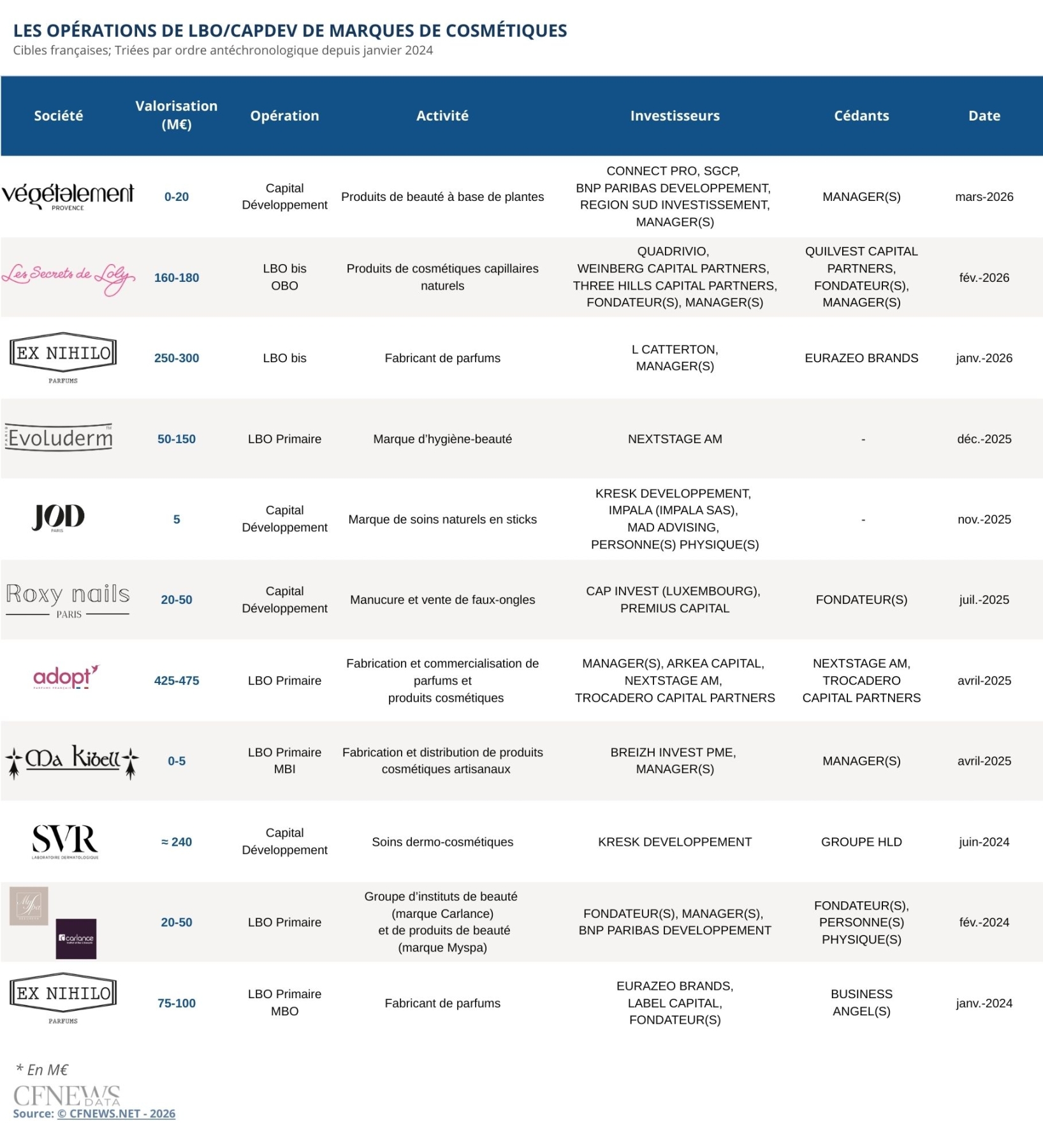 LES OPÉRATIONS DE LBO ET CAPDEV DE MARQUES DE COSMÉTIQUES ©CFNEWS.net-2026