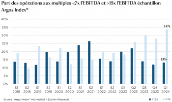 Le multiple médian d’acquisition des PME et ETI de la zone euro mesuré par l'Argos Index s’établit au second trimestre à...